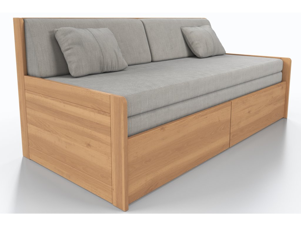 ROZKLÁDACÍ LŮŽKO SÁRA Z MASIVNÍHO BUKU – JEDNODUCHÉ, PRAKTICKÉ A ELEGANTNÍ V KAŽDÉM DETAILUPOSTEL, KTERÁ SE PŘIZPŮSOBÍ VÁM - PŘES DEN POHODLNÉ SEZENÍ, V NOCI PLNOHODNOTNÉ MANŽELSKÉ LŮŽKORozkládací postel Sára je důkazem, že funkčnost a poctivé zpracování mohou jít ruku v ruce s elegantním designem.Vyrobená z průběžného masivu bukového dřeva (ne z cinovaného parketového), je určena pro ty, kteří hledají pevné, trvanlivé a zároveň krásné řešení pro každodenní používání.Její praktická rozkládací konstrukce umožňuje jednoduchým pohybem proměnit jednolůžko na pohodlnou manželskou postel – ideální řešení pro hostinské pokoje, dětské a studentské pokoje či menší byty. PRAVÉ DŘEVO, PRAVÁ KVALITAPostel Sára je vyrobena z průběžného bukového masivu o tloušťce 2,5 cm, který zaručuje stabilitu, pevnost a dlouhou životnost.Bukové dřevo patří mezi nejodolnější dřeviny v nábytkářství – vyniká svou tvrdostí, hustotou a elegantní kresbou.Každý kus prochází pečlivým ručním zpracováním, díky kterému vynikne přirozená struktura a teplý odstín bukového dřeva.Povrch je ošetřen vodou ředitelným ekologickým lakem, který dřevo chrání a zároveň mu umožňuje dýchat.Na přání je možné postel natřít podle vzorníku barev, aby dokonale ladila s interiérem.✔️ 100 % masivní buk – žádné lepené spoje✔️ Ekologický lak bez zápachu✔️ Možnost moření podle vzorníku ÚLOŽNÝ PROSTOR A PRAKTICKÉ DETAILYRozkládací část postele skrývá dva prostorné úložné prostory, které poskytují dostatek místa pro ložní prádlo, polštáře či sezónní věci.Každý detail je promyšlen tak, abyste získali maximum funkčnosti na minimální ploše.V složeném stavu slouží jako pohodlné jednolůžko nebo pohovka, po rozložení se mění na plnohodnotnou postel pro dva – praktické řešení, které si zamilujete. ROZMĚRY A TECHNICKÉ PARAMETRYRozměr ve složeném stavu: 200 × 80 / 90 cmRozměr v rozloženém stavu: 200 × 160 / 180 cmVnější rozměr: 205 × 88 / 168 cm, 205 × 98 / 188 cmVýška čela na hlavě (zábrana): 90 cmVýška bočních čel: 55 cmVýška zásuvky: 34 cmTloušťka materiálu: 2,5 cmNosnost: do 140 kg➡️ Postel je dodávána v demontovaném stavu – jednoduchá montáž se vším potřebným.➡️ Rošty ze smrku jsou v ceně postele.➡️ Matraci není součástí dodávky. NA MÍRU – PODLE VAŠICH POTŘEBStejně jako všechny naše výrobky, i postel Sára vyrábíme ručně na Slovensku s možností úprav podle přání.Můžeme ji prodloužit, zkrátit, upravit výšku nebo moření – tak, aby dokonale zapadla do vašeho prostoru a stylu.✔️ Výroba na míru bez kompromisů✔️ Ruční zpracování a kontrola kvality✔️ Slovenský výrobek s tradicíPROČ SI VYBRAT POSTEL SÁRA?✅ Masivní buk – pevný, odolný a krásný✅ Praktické rozkládání na dvojlůžko✅ Dva úložné prostory pod lůžkem✅ Ekologický povrch bez zápachu✅ Ruční výroba na Slovensku✅ Možnost výroby na míru POSTEL SÁRA – DESIGN, KTERÝ SLUŽÍ A VYDRŽÍRozkládací postel Sára z masivního buku je víc než jen funkční nábytek.Je to spolehlivý, nadčasový a krásný kus dřeva, který vám přinese pohodlí, prostor a klid každý den.Kvalitní slovenský výrobek, který se přizpůsobí vám. Více o BukuRošty (smrkové) v ceně.Matrace není v ceně postele! Dodávano v demontu.Buďte první, kdo napíše příspěvek k této položce.