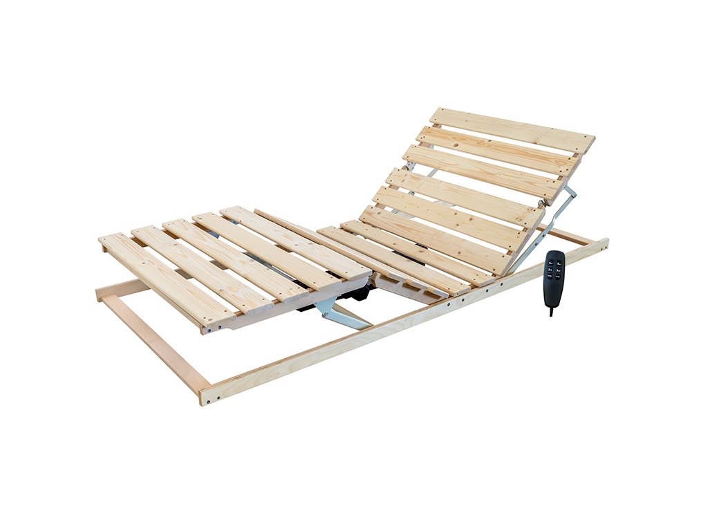 Laťový rošt Latt Lux 16 Motor má polohování pomocí motoru. Laťový rošt s vyšší nosností 140 kg. Rošt se skládá ze 16 latí ze smrkového dřeva uchycených pomocí vrutů ke konstrukci rámu. Nadstandardní výdrž a odolnost díky přídavným zpevňujícím hranolkům. Zaoblené hrany zvyšují pohodlí nejen při manipulaci s roštem, ale také přispívají ke snadné údržbě matrace.