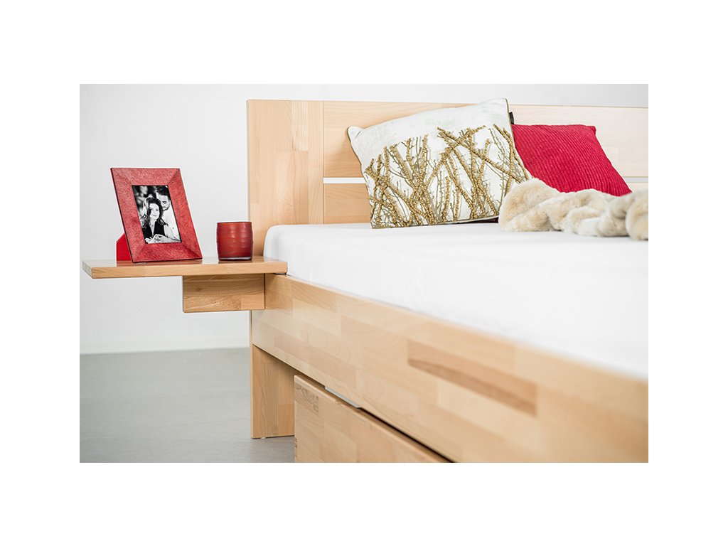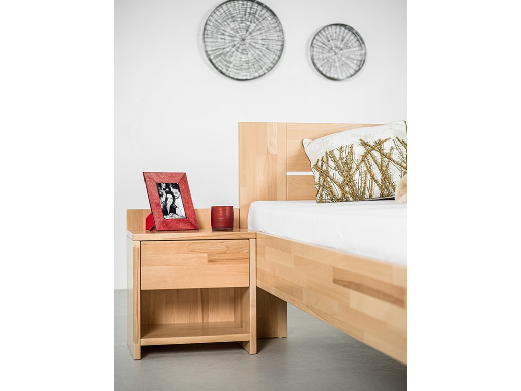 Postel Vento je vyrobena z kvalitního bukového masivu. Typickým rysem napojované spárovky (cink) jsou krátké lamely, které vytvářejí parketový vzor s rozmanitou barevností dřeva. Dílce postele jsou profilované a díky tvarovanému spoji do sebe perfektně zapadají. Pro postel Vento je charakteristická vzdušnost a lehkost, kterou podtrhuje moderní dělené čelo.Zusätzliche Parameter
