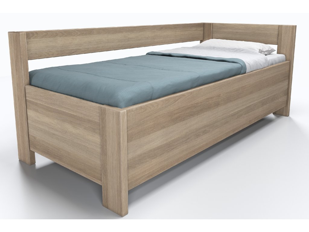 Dubová rohová postel Ela s opěrkou a úložným prostorem