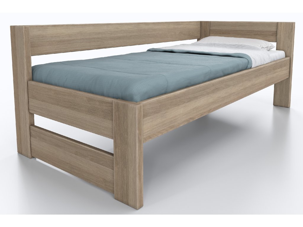 Dubová rohová postel Ela s opěrkou
