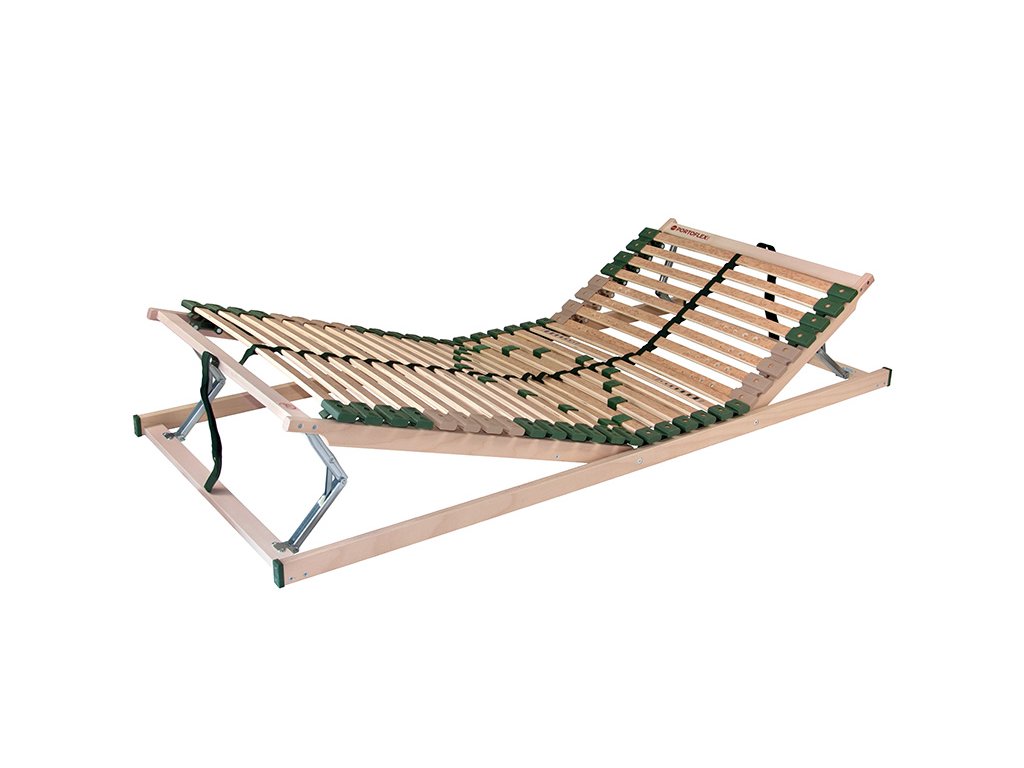 Díky zpevněné konstrukci a silnějším lamelám je tento rošt přizpůsoben pro vyšší zátěž, až 180 kg. Polohování hlavy i nohou oceníte při komfortním čtení a odpočinku. Pevná středová část se postará o lepší oporu beder. Snadné nastavení polohování textilním úchytem při zdravotních obtížích a únavě. Speciálně uložená výkyvná pouzdra zaručují vyšší nosnost a odolnost proti prudkému zatížení. Rozdělení roštu do 7 anatomických zón umožní optimální oporu v oblasti hlavy, ramen, trupu, beder, stehen, lýtek a chodidel. Frézované lamely v ramenní oblasti poskytnou správnou oporu páteře při poloze spánku na boku. Středový popruh zlepšuje stabilitu a vyrovnává zatížení roštu.Additional parameters