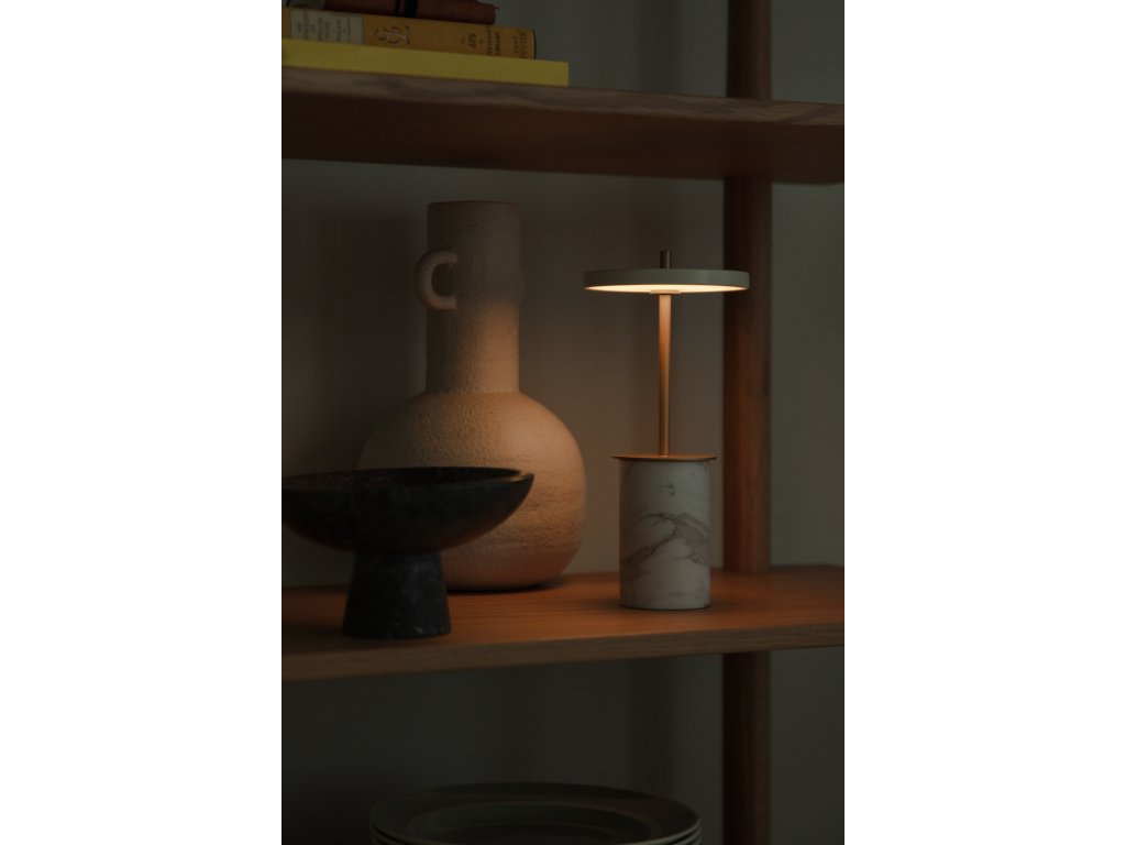 Elegantní designová stolní lampička Umage Asteria Move Mini se zabudovaným LED panelem s čtyřstupňovým stmívačem a mramorovou základnou, dostupná ve 4 barevných provedeních.Additional parameters