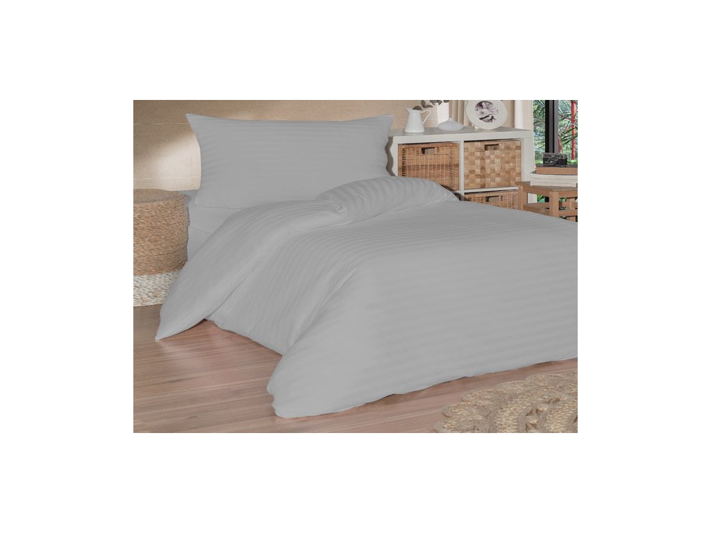 Francouzské povlečení saténový proužek 200x200, 70x90cm šedé