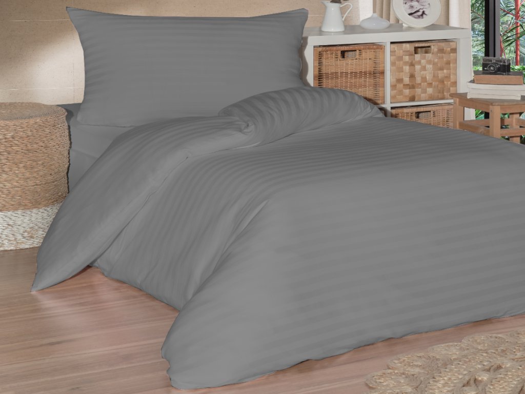 Francouzské povlečení saténový proužek 220x220, 70x90cm šedé