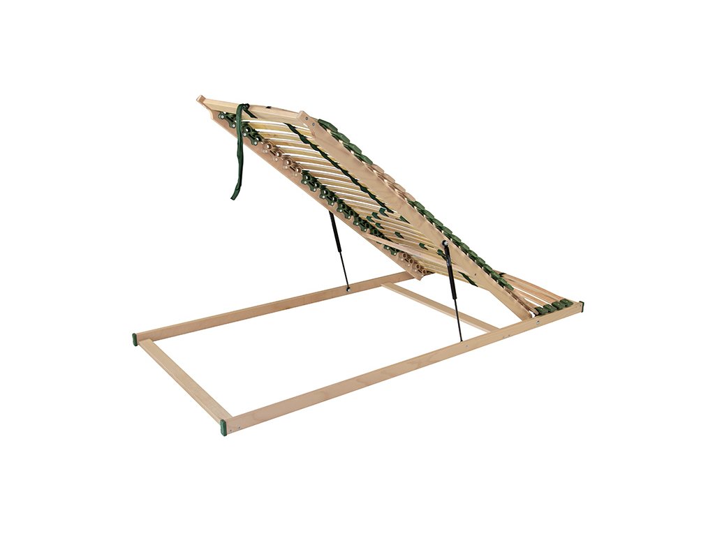 Pohodlný a odolný rošt s pouzdry uloženými nad bočnicí poskytuje vyšší komfort při spánku. Postelový rošt s výklopem nožní části pomocí pístu s přístupem do celého úložného prostoru. Speciálně uložená výkyvná pouzdra zaručují vyšší nosnost a odolnost proti prudkému zatížení. Pružné lamely v 7 anatomických zónách se natáčejí a reagují na pohyb těla při spánku. Každá část těla je tak individuálně podepřena. Změkčení v ramenní oblasti je správnou oporou páteře při spánku na boku. Středový popruh zlepšuje stabilitu roštu. Posuvnými objímkami lze nastavit individuální tuhost v bederní části. Lamely opatřené folií zabraňují pronikání vlhkosti do roštu a usnadní údržbu roštu.Kiegészítő paraméterek