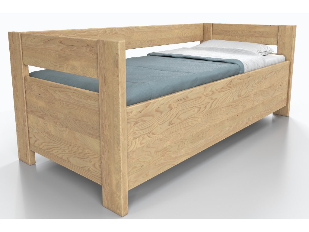 Jasanová postel Ela s opěrkou a úložným prostorem