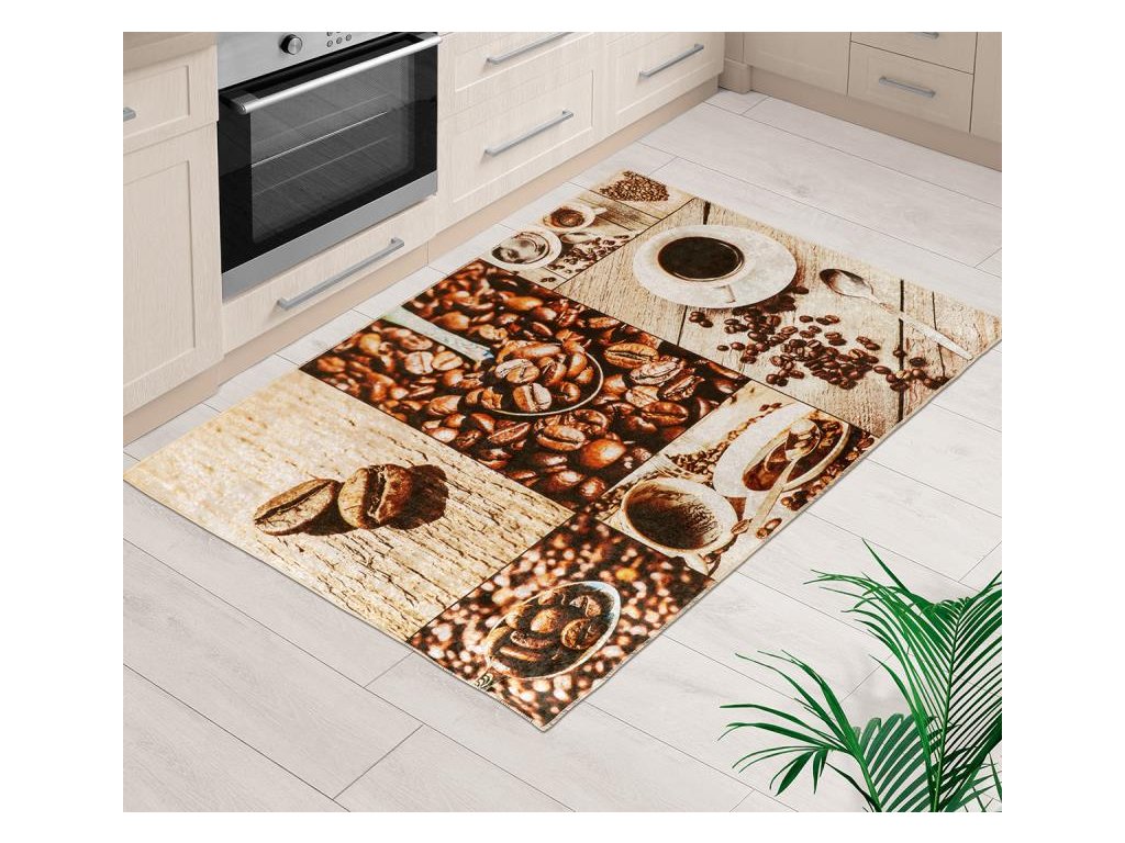 Z jedné strany je fototisk, z druhé strany protiskluzový latexový nátěr, díky němuž běhoun neklouže po podlaze.