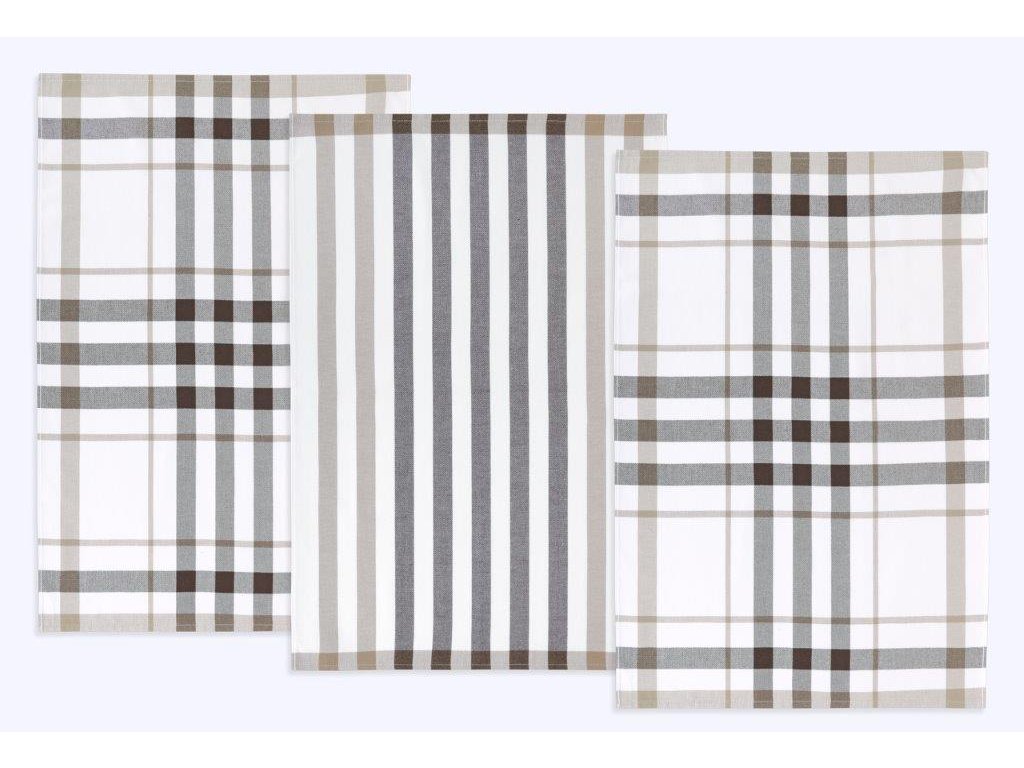 Kuchyňské utěrky jsou vyrobeny ze 100% bavlny o plošné gramáži 240g/m2. Jsou dostatečně velké a velmi dobře savé, v různých barevných variacích a dezénech. 100% bavlna zajišťuje dostatečnou savost použitého materiálu. Balení obsahuje tři kusy utěrek, barevnost utěrek může být odlišná oproti vyobrazení.