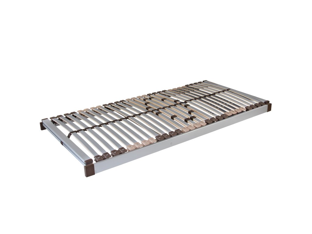 Přizpůsobivý a elegantní rošt vhodný i pro alergiky. Pružná pouzdra člení plochu lůžka do 7 anatomických zón s možností regulace tuhosti v bederní části. Speciálně uložená výkyvná pouzdra zaručují vyšší nosnost a odolnost proti prudkému zatížení. Lamely se díky ramenní kolébce pod tlakem ramen stlačí hlouběji, rameno se zaboří a páteř zůstává v přirozeném tvaru. S přídavnou lištou na krajích roštu nedochází k deformaci okrajů matrace. Potažení dřevěných částí fólií značně usnadňuje údržbu a omezuje vytváření bakterií a plísní v posteli.Doplňkové parametry