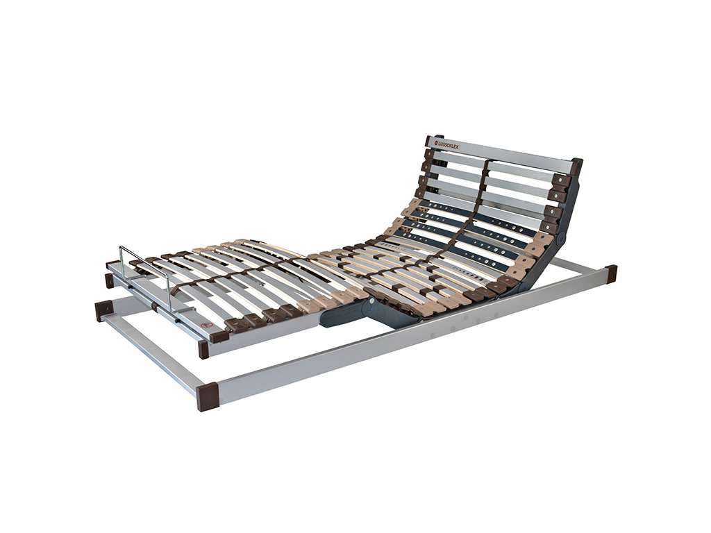 Přizpůsobivý a elegantní rošt vhodný i pro alergiky. Motor je umístěn v konstrukci rámu roštu, mechanickým zdvihem a přidržením nožní části lze zajistit přístup do úložného prostoru pod lůžkem. Pružná pouzdra člení plochu lůžka do 7 anatomických zón s možností regulace tuhosti v bederní části. Speciálně uložená výkyvná pouzdra zaručují vyšší nosnost a odolnost proti prudkému zatížení. Lamely se díky ramenní kolébce pod tlakem ramen stlačí hlouběji, rameno se zaboří a páteř zůstává v přirozeném tvaru. S přídavnou lištou na krajích roštu nedochází k deformaci okrajů matrace. Potažení dřevěných částí fólií značně usnadňuje údržbu a omezuje vytváření bakterií a plísní v posteli. Madlo zajistí, že matrace při polohování zůstane na svém místě. Tento rošt je dodáván s dálkovým šňůrovým ovládáním.Doplňkové parametry