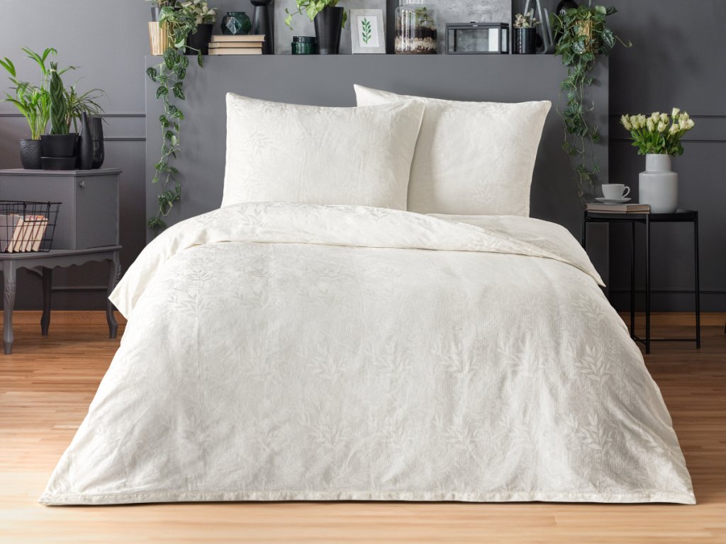 Dopřejte si skutečný komfort a eleganci s naším luxusním žakárovým povlečením, které promění vaši ložnici v oázu klidu a stylu. Decentní smetanový odstín v kombinaci s jemným žakárovým vzorem působí vkusně a moderně, zároveň však vytváří pocit nadčasové noblesy.