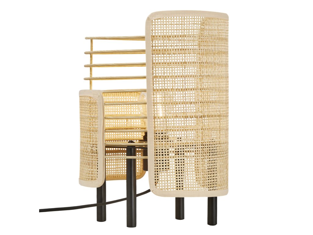 Stolní lampička Jaffna se skládá z ratanových panelů asymetricky umístěných na konstrukci, ideální do obývacího pokoje.Doplňkové parametry