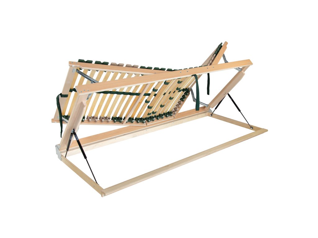 Pohodlný a odolný rošt s pouzdry uloženými nad bočnicí poskytuje vyšší komfort při spánku. Unikátní rošt 2v1 s více funkcemi nabízí jak pohodlné polohování, tak i boční odklápění pomocí pístu. Zdvih pomocí textilního úchytu usnadní každodenní manipulaci. Speciálně uložená výkyvná pouzdra zaručují vyšší nosnost a odolnost proti prudkému zatížení. Pružné lamely v 7 anatomických zónách se natáčejí a reagují na pohyb těla při spánku. Každá část těla je tak individuálně podepřena. Změkčení v ramenní oblasti je správnou oporou páteře při spánku na boku. Středový popruh zlepšuje stabilitu roštu. Posuvnými objímkami lze nastavit individuální tuhost v bederní části. Lamely opatřené folií zabraňují pronikání vlhkosti do roštu a usnadní údržbu roštu.Parametry dodatkowe