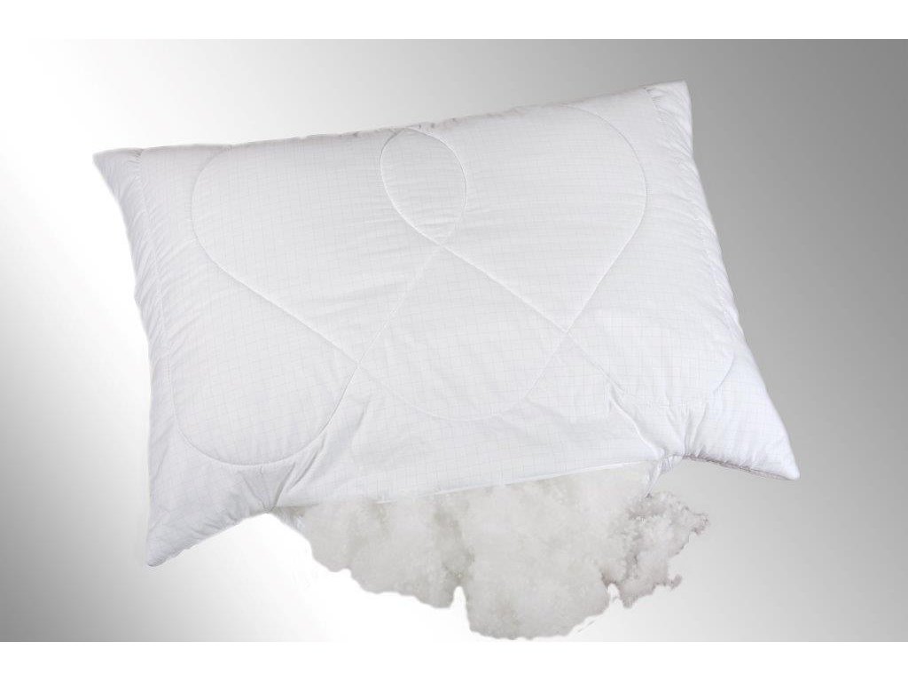 Polštáře AntiStress obsahují vysoce kvalitní značkové kuličkové duté vlákno UNICO, které je určeno specielně pro výrobu protialergických polštářů. Polštáře se díky těmto kvalitním kuličkám dají snadno naklepat a nemění tvar. Kuličkové vlákno je uvnitř prošitého korpusu, který je prošitý ( látka, rouno, netkaná textilie ). Netkaná textilie je velmi důležitým materiálem u polštářů. Hlavní funkcí tohoto materiálu je zabránění spojení rouna s kuličkovým vláknem. Polštář je opatřen zipovým uzávěrem, pro možnost doplnění či odebrání části výplně dle potřeby zákazníka. Povrchovým materiálem je 100% polyester s vetkanými jemnými carbonovými vlákny. Carbonové vlákno slouží k odvodu statické elektřiny, napětí a tím přispívá k uvolnění těla a klidnému, ničím nerušenému spánku. Polštáře jsou vhodné pro alergiky.