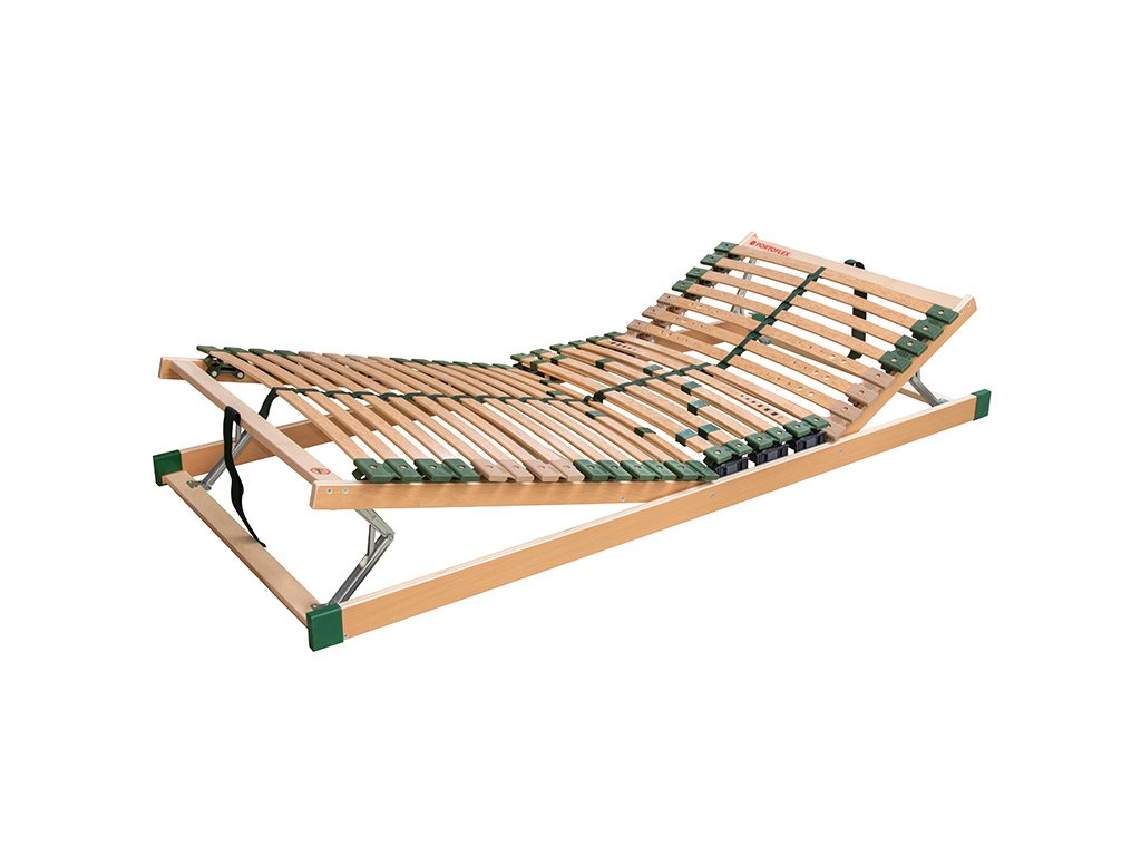 Portoflex EXTRA je inovativní rošt, který napomáhá řešení problémů s bederní lordózou (prohnutí páteře). Výškové nastavovače umožní 5 výškových stupňů podpory v bederní části. Jeho pružné lamely jsou rozděleny do pěti anatomických zón, což poskytuje optimální podporu pro každou část těla. Speciální změkčení lamel v ramenní oblasti pomáhá snižovat tlak na ramena a středový popruh zajišťuje vysokou stabilitu roštu. Navíc, výkyvná pouzdra nad bočnicí zvyšují nosnost a odolnost proti prudkému zatížení. Lamely jsou opatřeny ochrannou folií, což prodlužuje jejich životnost a zajišťuje snadnou údržbu. Polohování hlava-nohy s pevnou středovou částí zajistí pohodlí a dokonalý relax.