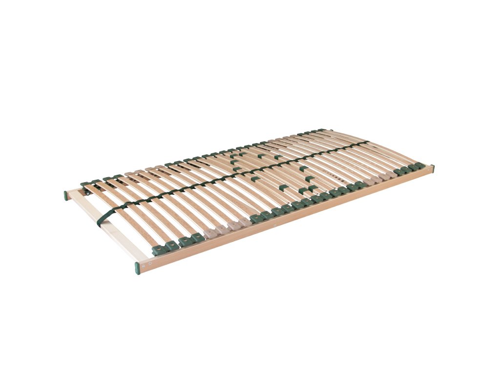Pohodlný a odolný rošt s pouzdry uloženými nad bočnicí poskytuje vyšší komfort při spánku. Speciálně uložená výkyvná pouzdra zaručují vyšší nosnost a odolnost proti prudkému zatížení. Pružné lamely v 7 anatomických zónách se natáčejí a reagují na pohyb těla při spánku. Každá část těla je tak individuálně podepřena. Změkčení v ramenní oblasti je správnou oporou páteře při spánku na boku. Středový popruh zlepšuje stabilitu roštu. Posuvnými objímkami lze nastavit individuální tuhost v bederní části. Lamely opatřené folií zabraňují pronikání vlhkosti do roštu a usnadní údržbu roštu.Doplňkové parametry