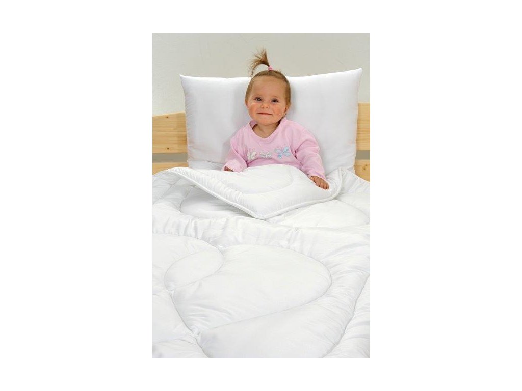 Dětská přikrývka je středně teplá celoroční přikrývka o gramáži 300g/m2. Obsahuje vysoce kvalitní dutinkové komorové pojené plně protialergické duté vlákno, které je určeno specielně pro výrobu těchto přikrývek. Díky tomuto vláknu se přikrývka obemkne kolem těla spícího člověka a přispěje k pohodlnému spánku.