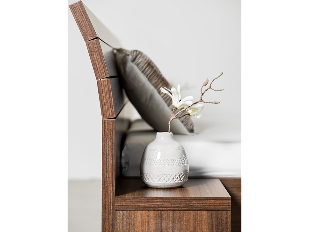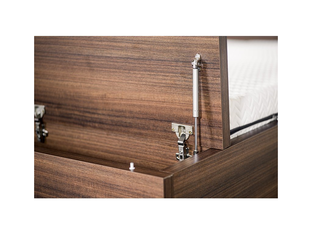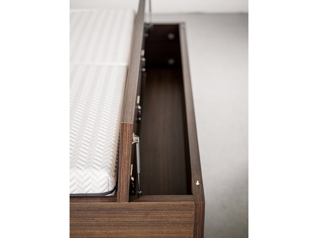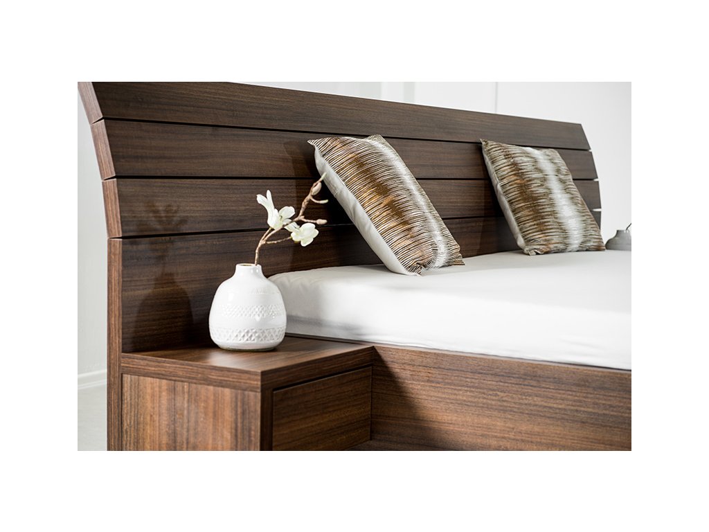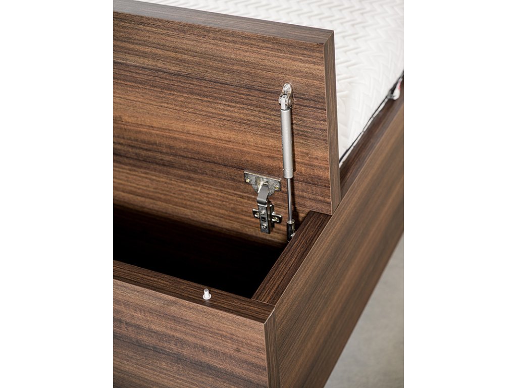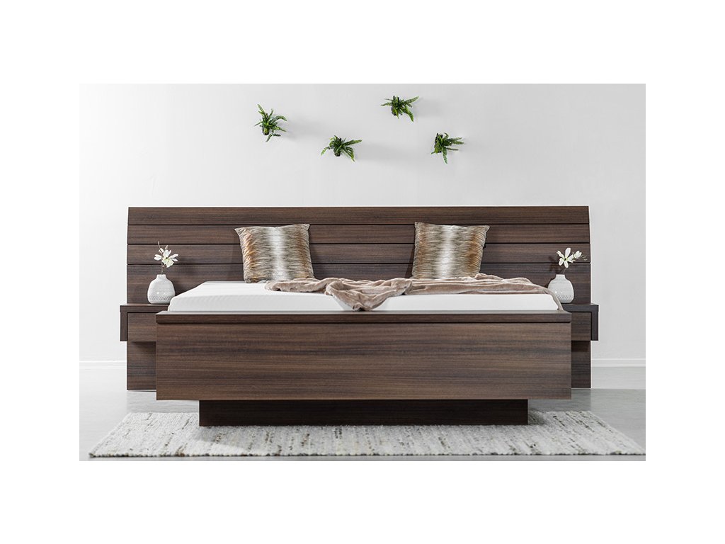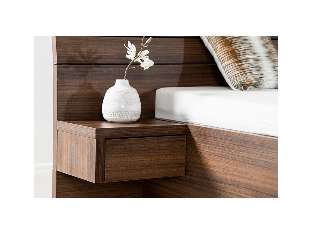 Levitující postel - působí dojmem, jako by se vznášela ve vzduchu. Postel s praktickým úložným boxem na úschovu lůžkovin. Dominantou postele je čelo se zabudovanými nočními stolky (nutno samostatně dokoupit - viz kategorie noční stolky). Materiál lamino nadstandardní tloušťky 38 mm zabezpečuje vysokou stabilitu postele. Nastavitelná výška lehací plochy. Výška boku postele 50,5 cm. K posteli lze dokoupit úložný prostor (kategorie Úložné prostory). Postel je dodávána bez roštu a matrace.Doplňkové parametry