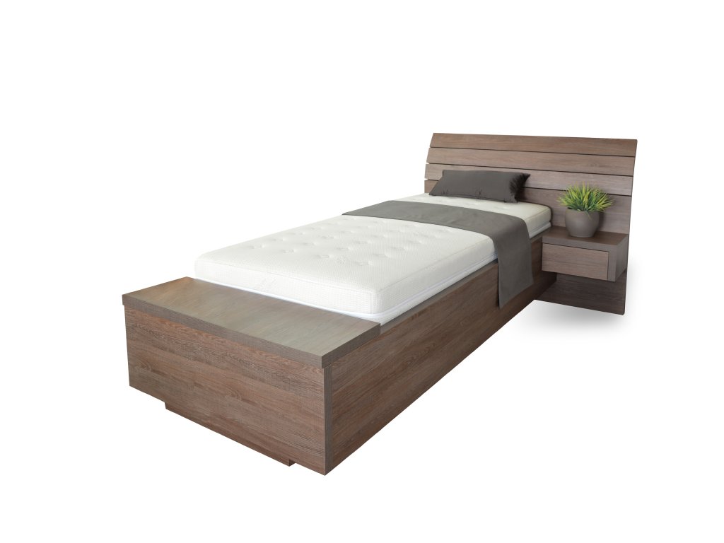 Levitující postel - působí dojmem, jako by se vznášela ve vzduchu. Úložný box na úschovu lůžkovin. Čelo postele se zabudovaným nočním stolkem (nutno samostatně dokoupit - viz kategorie noční stolky). Materiál - lamino nadstandardní tloušťky 38 mm zabezpečuje vysokou stabilitu postele. Nastavitelná výška lehací plochy. Výška boku postele 50,5 cm. K posteli lze dokoupit úložný prostor. Postel je dodávána bez roštu a matrace. Postel neobsahuje střednici (do postele lze vložit pouze 1 rošt).Doplňkové parametry