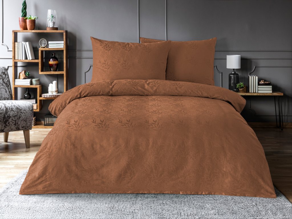 Dopřejte si skutečný komfort a eleganci s naším luxusním žakárovým povlečením, které můžete doplit o povlaky na polštáře různých rozměrů. Tato kombinace promění vaši ložnici v oázu klidu a stylu. Hnědý odstín v kombinaci s jemným žakárovým vzorem působí vkusně a moderně, zároveň však vytváří pocit nadčasové noblesy.