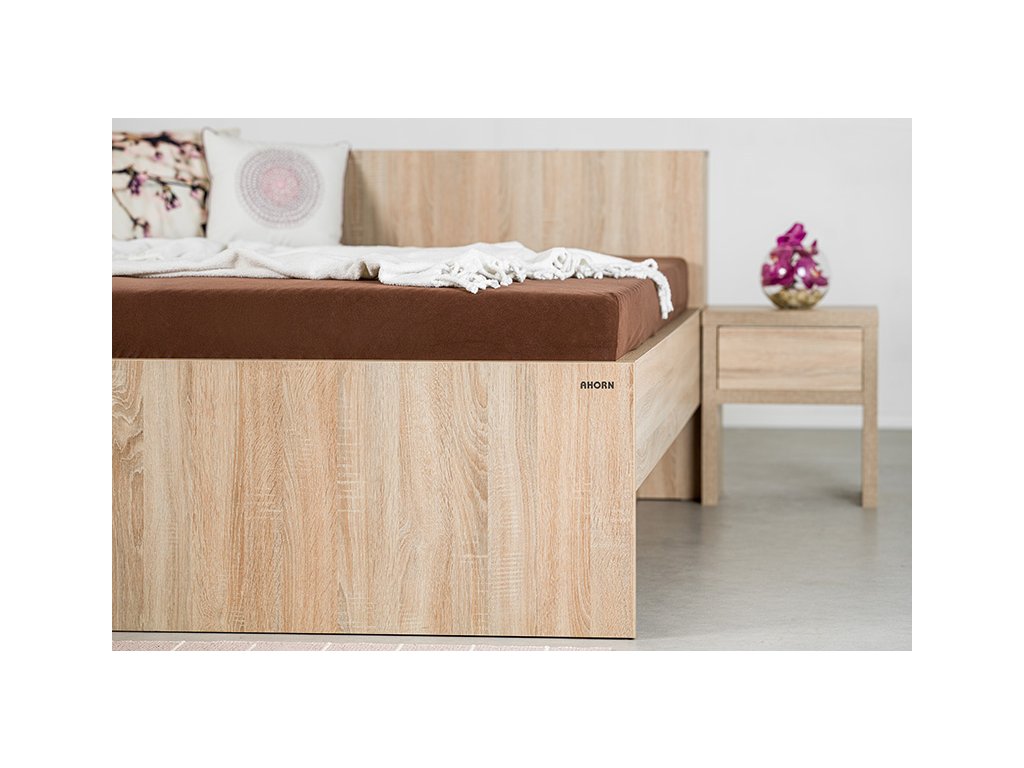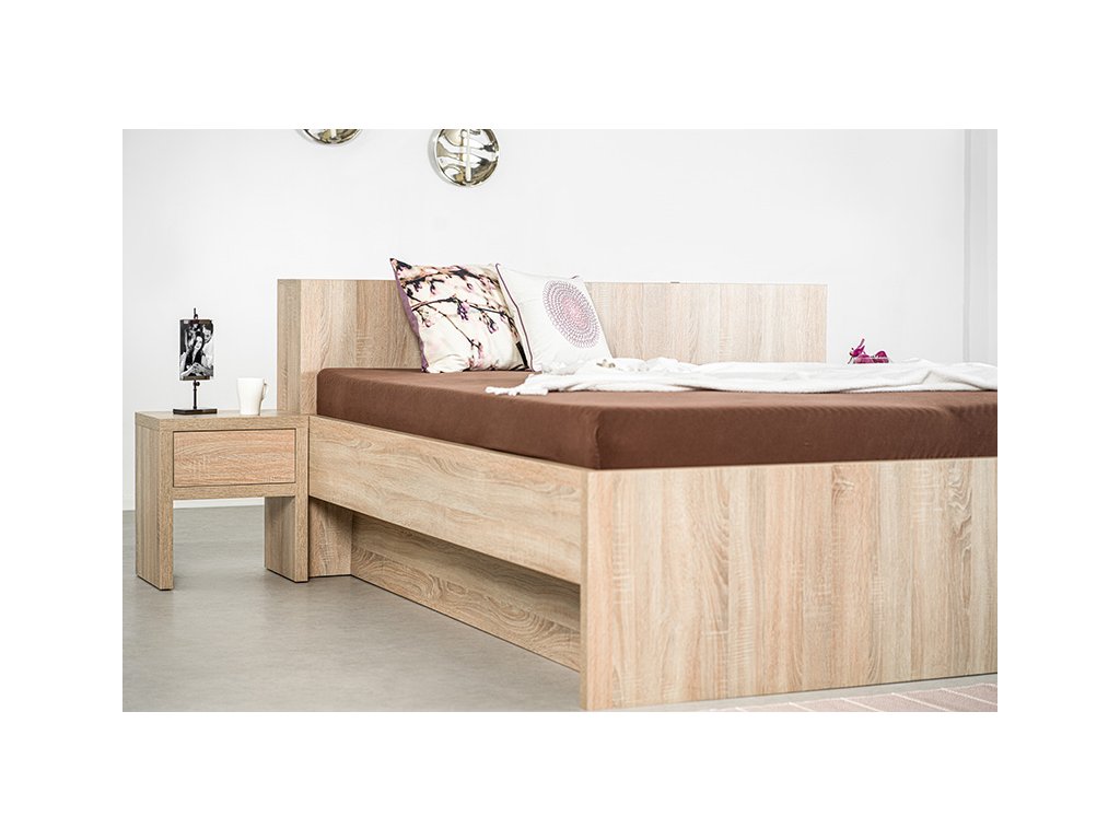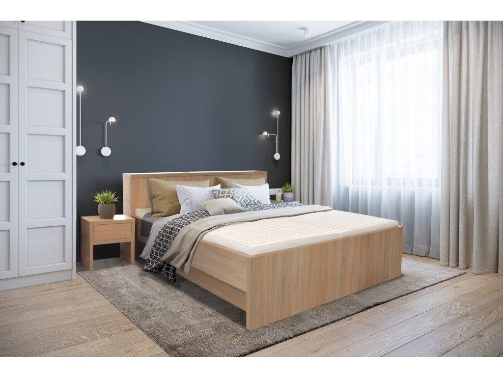 Jednoduchá a elegantní postel z lamina s plným čelem a praktickým úložným boxem za hlavou pro úschovu lůžkovin. Výška boku postele 50,5 cm. Výšku lehací plochy si můžete upravit díky nastavitelnému kování. Tloušťka lamina 38 mm zabezpečuje stabilitu a pevnost konstrukce postele. K posteli lze dokoupit úložný prostor pod lůžkem i noční stolky. Postel je dodávána bez roštů a matrací.Doplňkové parametry